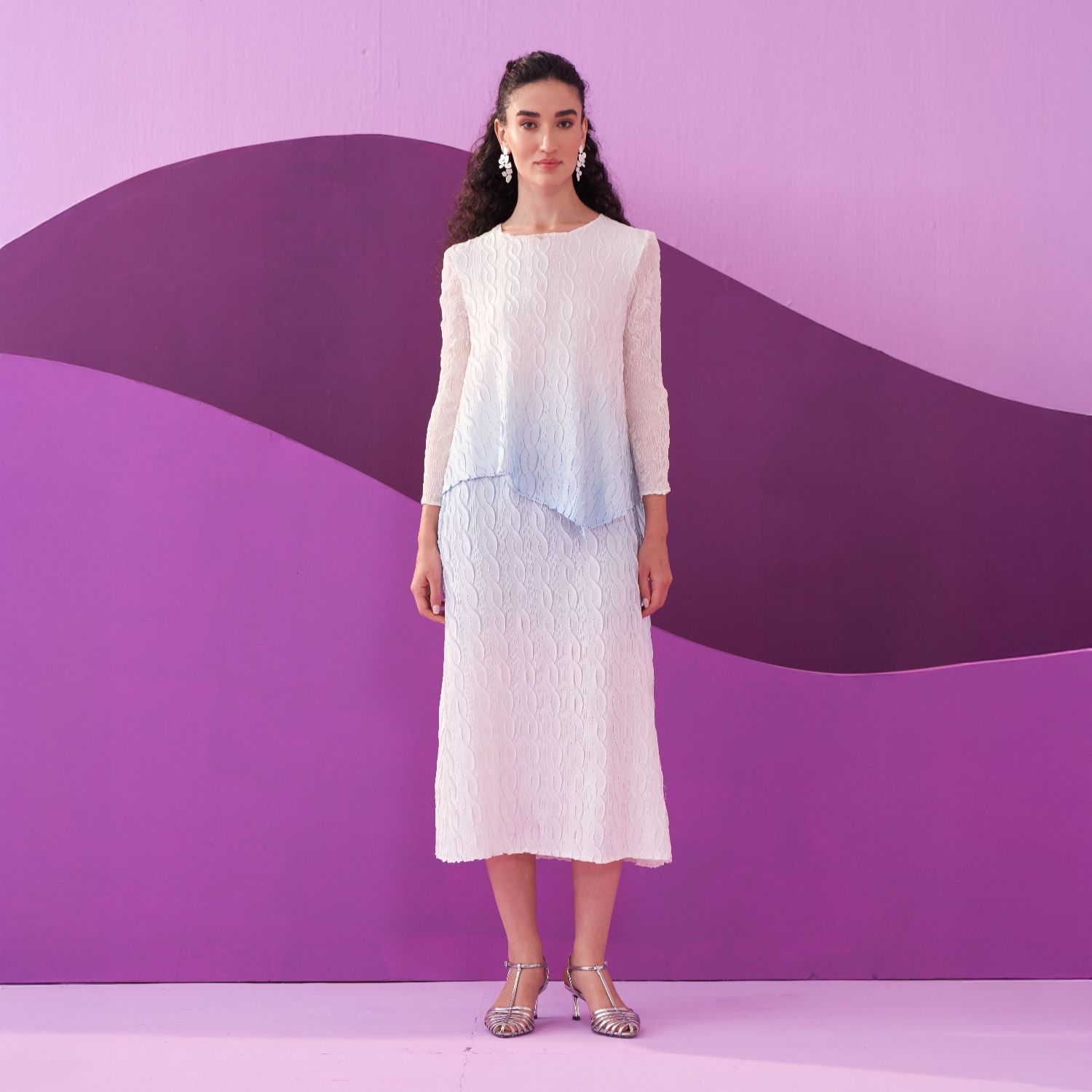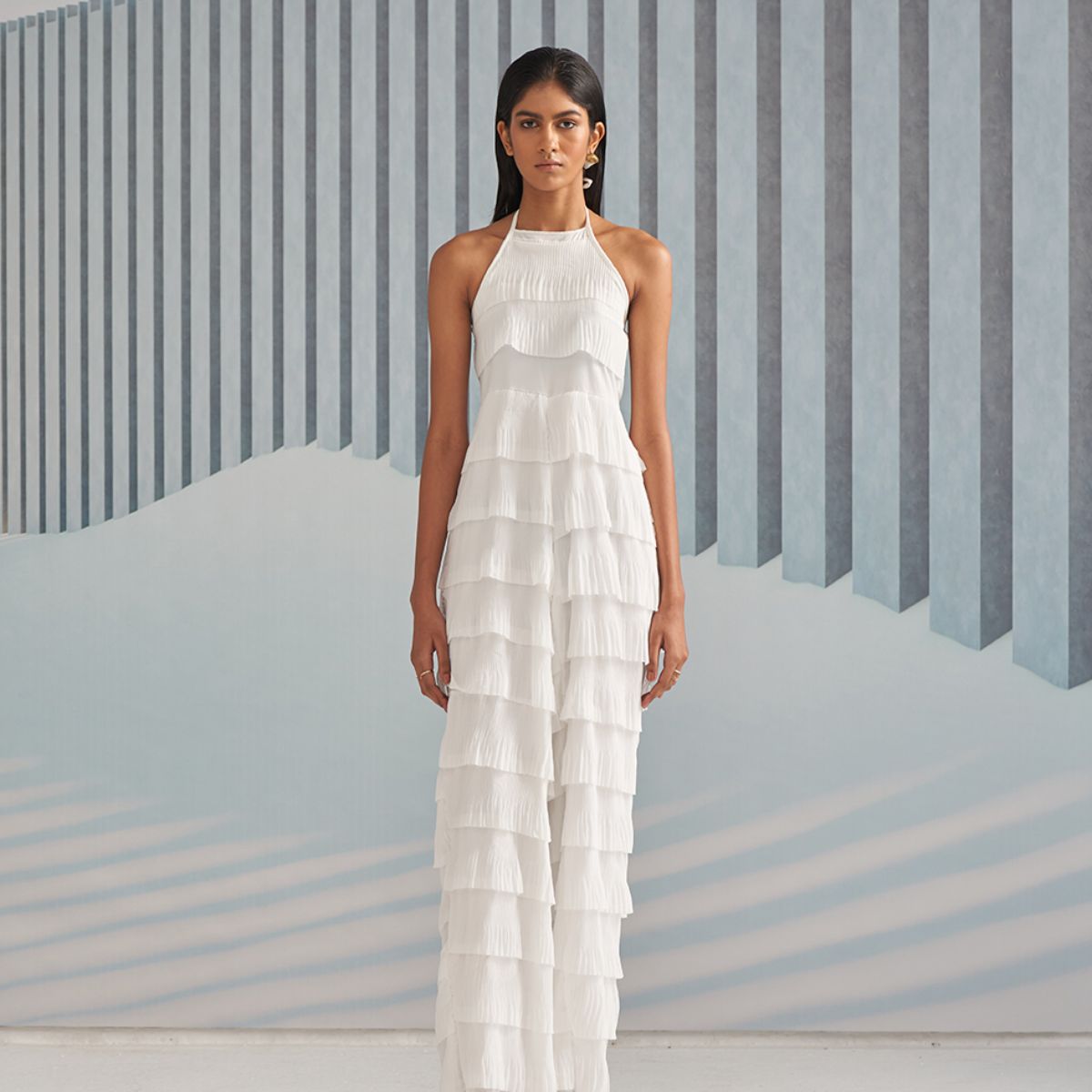 WHITE CIRCULAR DETAIL PLEATS GOWN