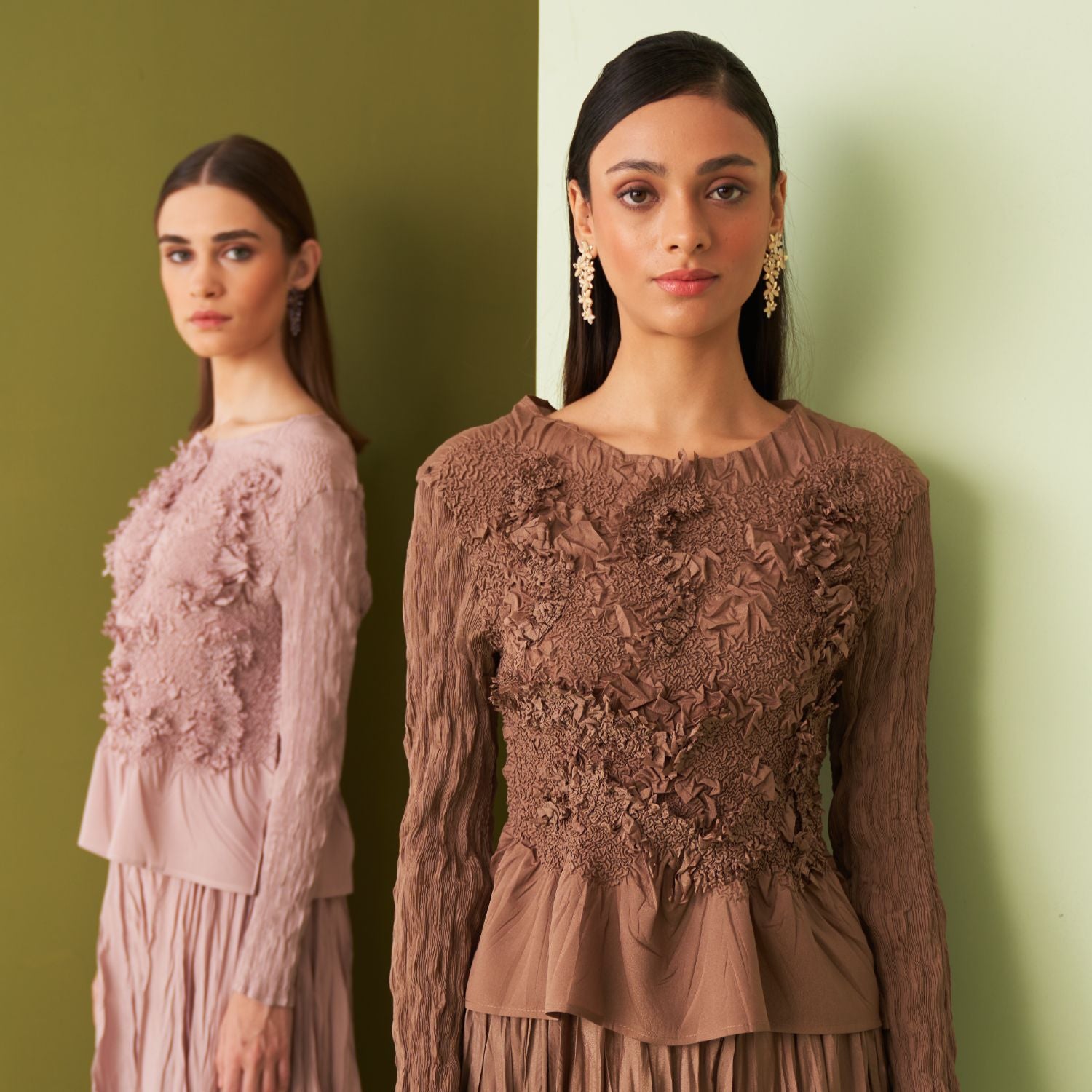 PURPLE CRINKLED TOP PAIRED WITH BLACK AND PURPLE SAREE