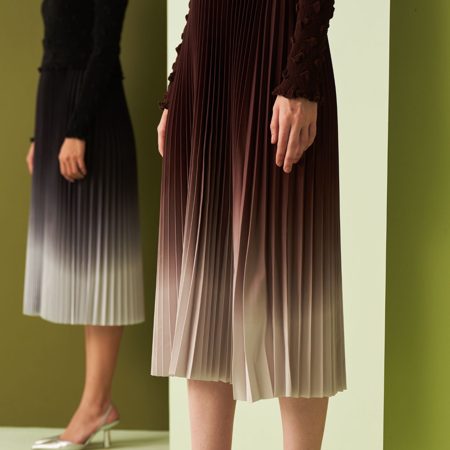 MAROON FLOWER SLEEVES PLEAT DRESS