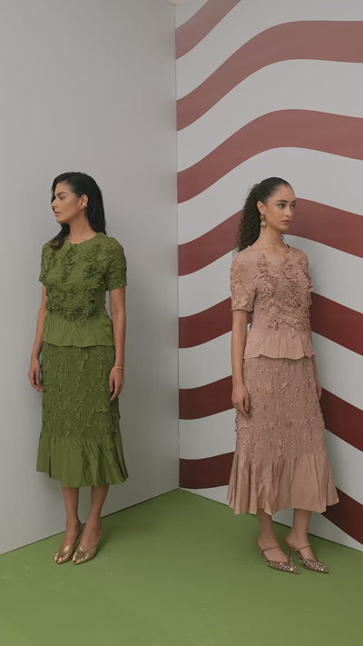 BOTTLE GREEN MERMAID TEXTURED DRESS
