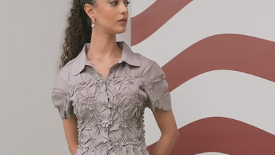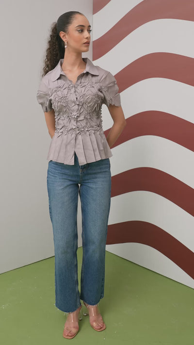 GREY CRINKLED TOP PAIRED WITH BLACK AND GREY SAREE
